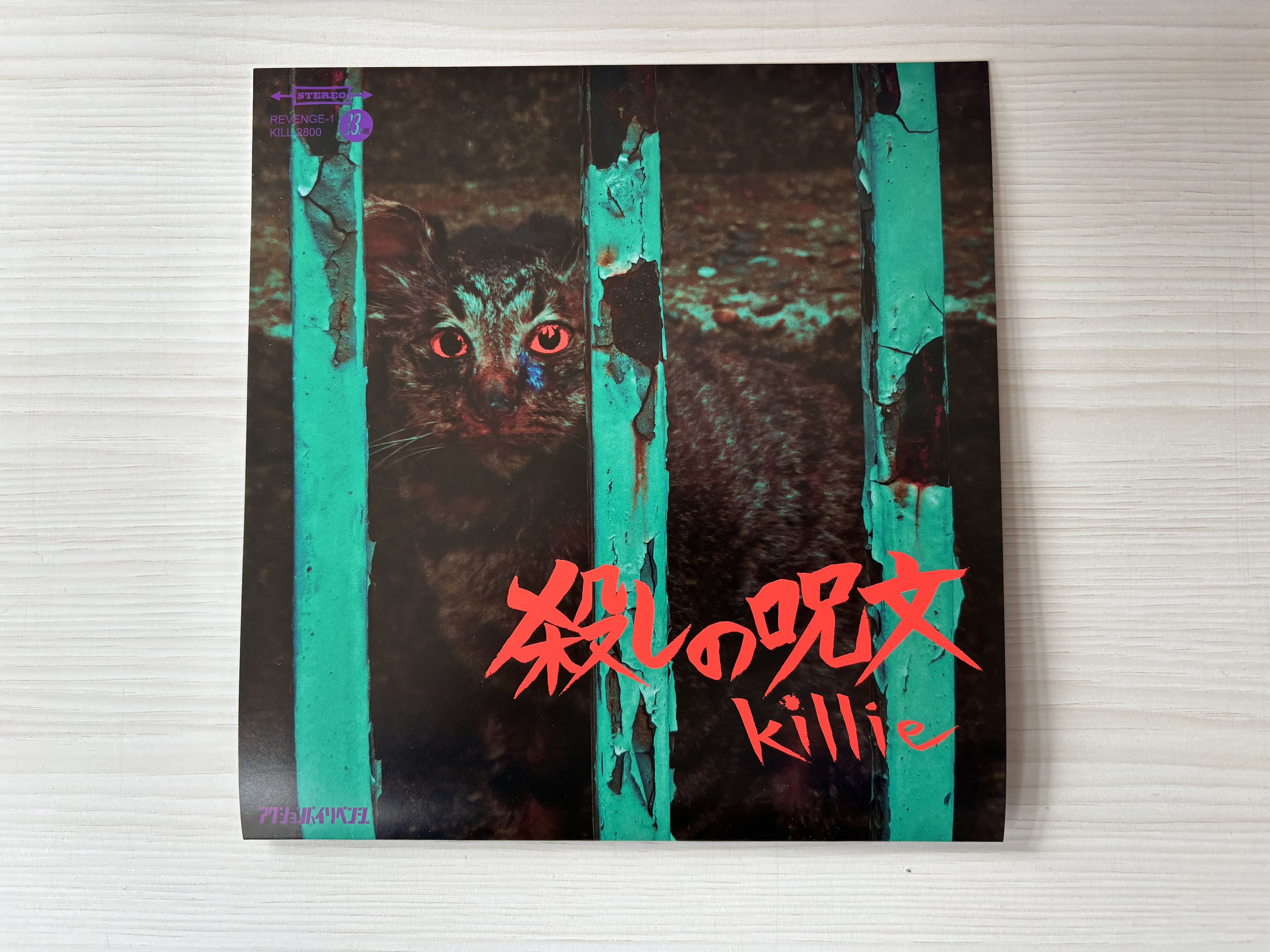 killieがコロナ禍である2020年にリリースした7inchレコード「殺しの呪文」が入荷!各面1曲ずつ計2曲入りに変形ブックレット、殺しの呪文ステッカー、3曲入りダウンロードコードを封入!盤面カラーはジャケットアートワークカラーのclear aqua+black(splatter)+neon red(splatter)と言う1stプレス盤です!このギミック感でこの価格はやりすぎ満載!買い逃していた方は是非持っておくべき!